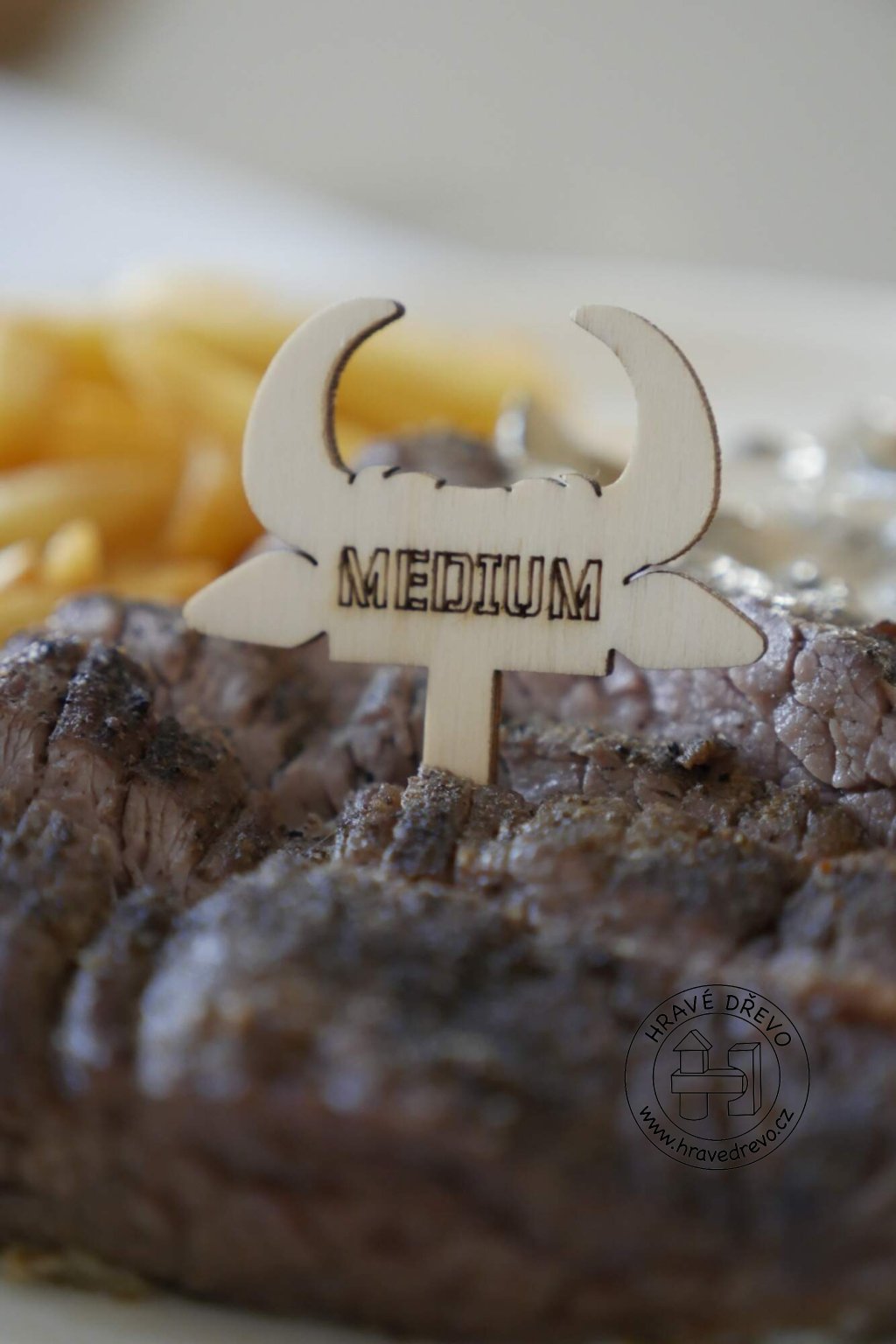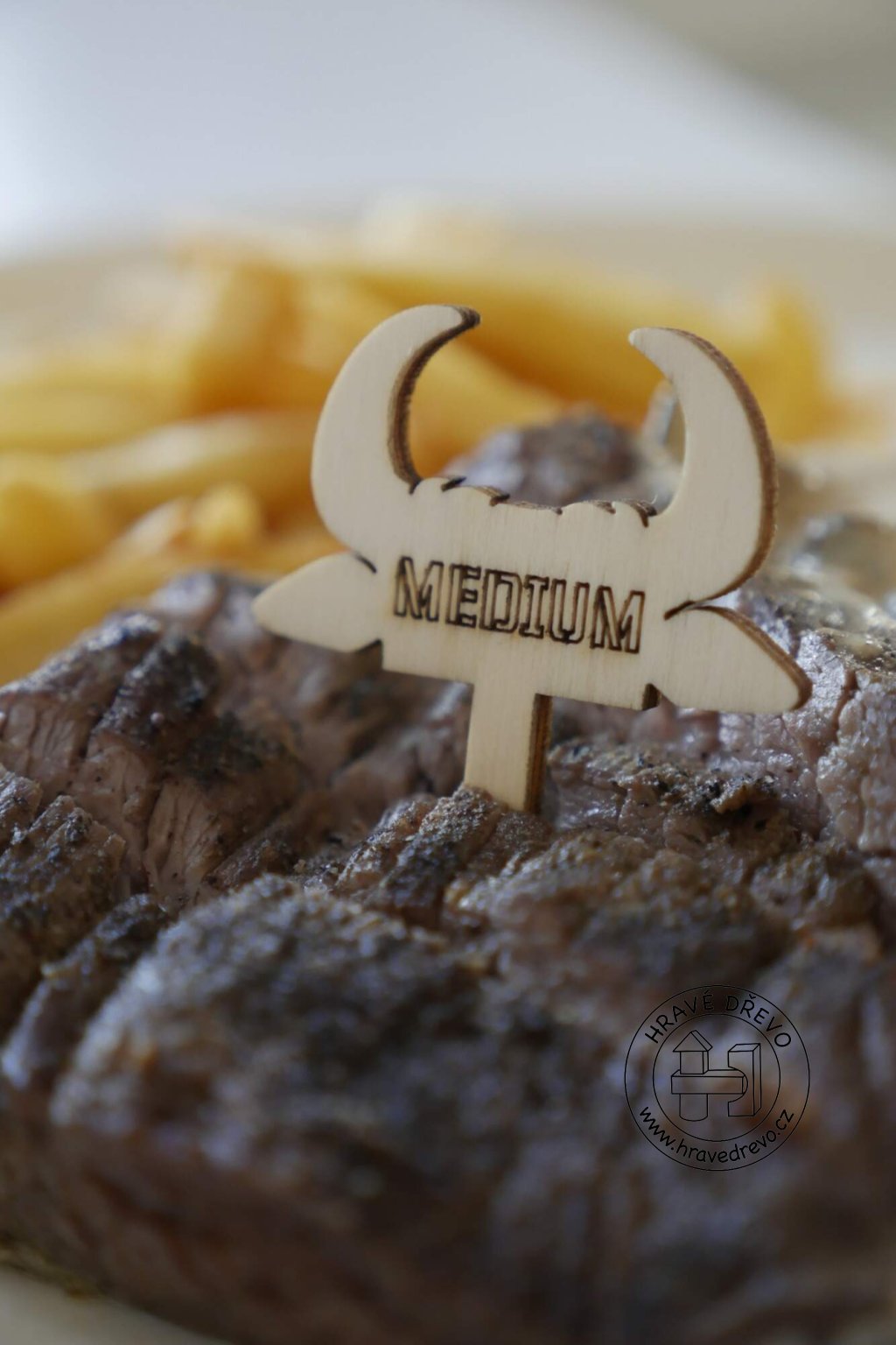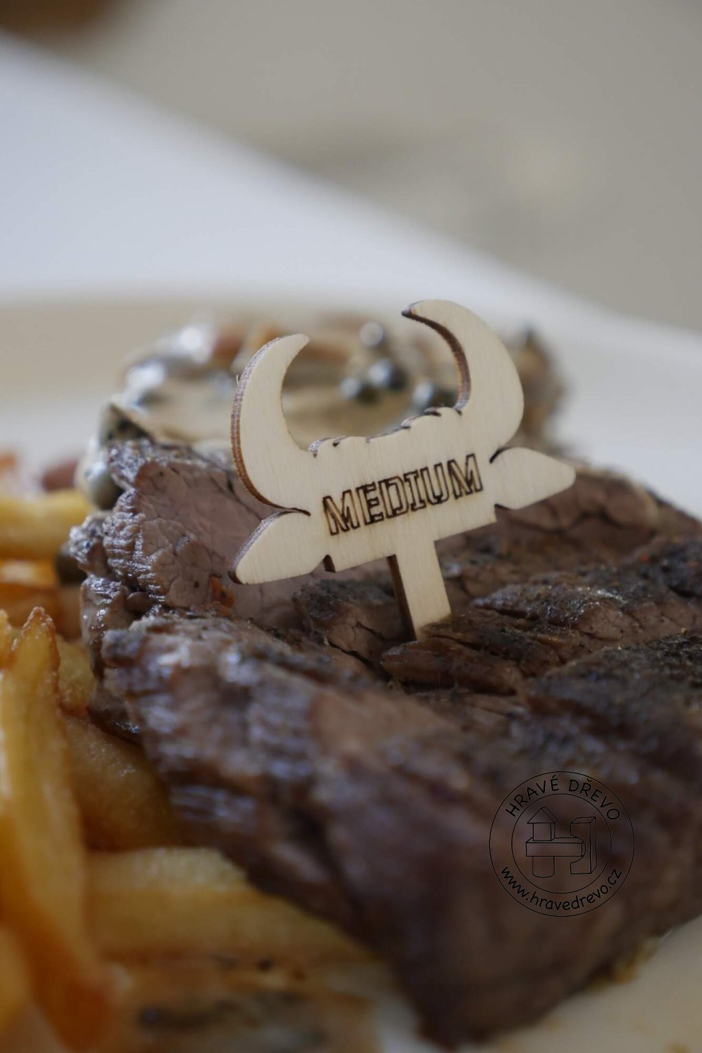Dřevěný steakový zápich rohy - MEDIUM 10 ks