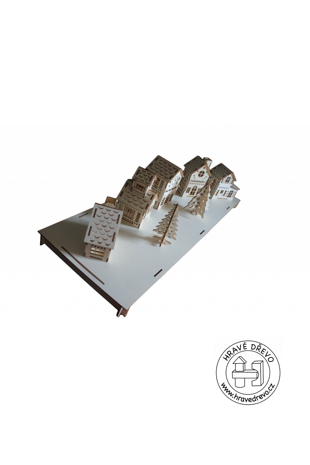 Podstavec pod domečky se skvěle hodí do každého obydlí. Můžete na něj přilepit např. vatu, umělý sníh, jehličí či cokoliv jiného a vytvořit si tak jedinečnou dekoraci třeba na stůl nebo na komodu.